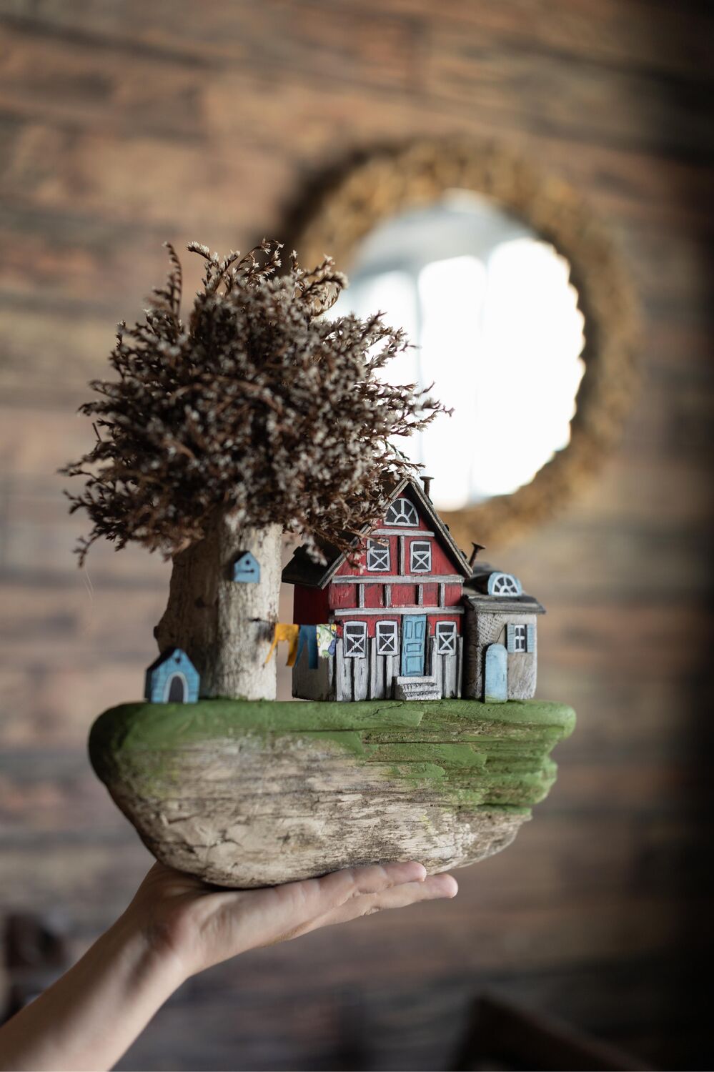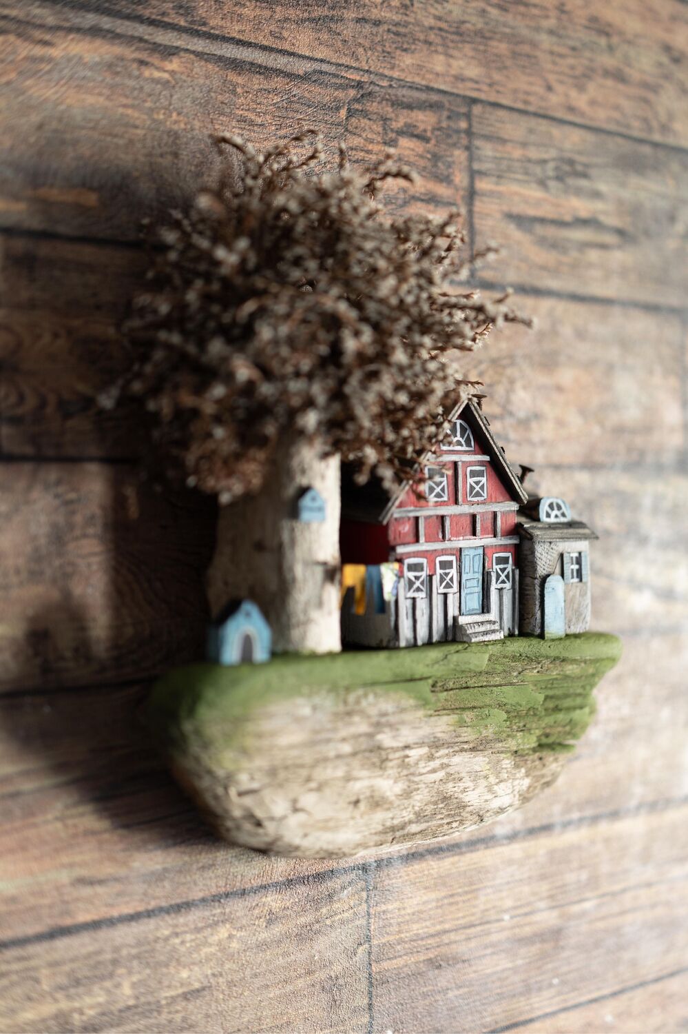 Materials: driftwood, dried flowers, wood